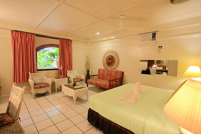 Direct room local and international dialing is available for your convenience. Simply dial # 9. All rooms are equipped with air conditioning, fully stocked refrigerators, Deluxe King Size Box Spring Mattress, living room area, in room safe deposit box, remote controlled cable television, including HBO, CNN, BBC, FOX news, ESPN, Discovery and Cinemax channels. For family use, an additional bed will be made available upon request.