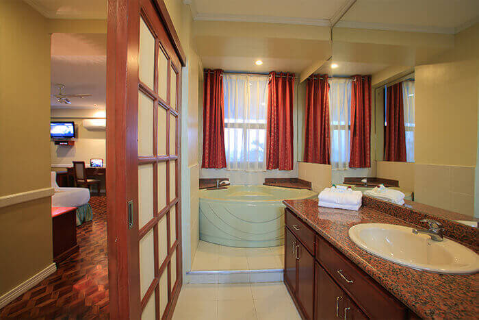 Our rooms with Silent Airconditioning, Hot and Cold Shower, In Room Safety Deposit Box, 32 inches Flat Screened TV with Cable Connection, DVD Player, Refrigerator, Telephone, and FREE Internet Connection.
